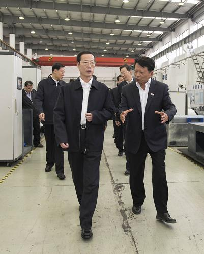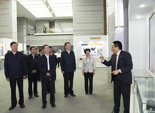 这是张高丽在苏州考察东菱振动试验仪器有限公司振动设备测试中心。新华社记者 王晔 摄