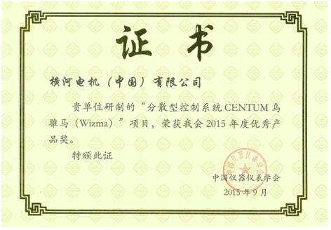 以上图片为分散型控制系统CENTUM乌骓马(Wizma)荣获 “优秀产品奖”的证书。