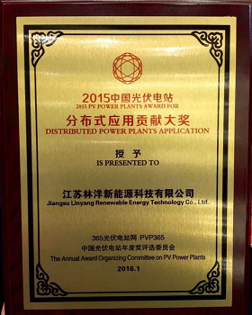 江苏林洋新能源科技有限公司作为我国光伏产业的先行者,在此次典礼受邀出席,并以领先优势获“2015中国光伏电站分布式应用大奖”。