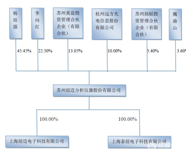 苏州纽迈分析仪器股份有限公司前身为苏州纽迈电子科技有限公司,系由自然人杨培强先生、 法人上海纽迈电子科技有限公司共同出资人民币200 .00 万元设立的有限责任公司。