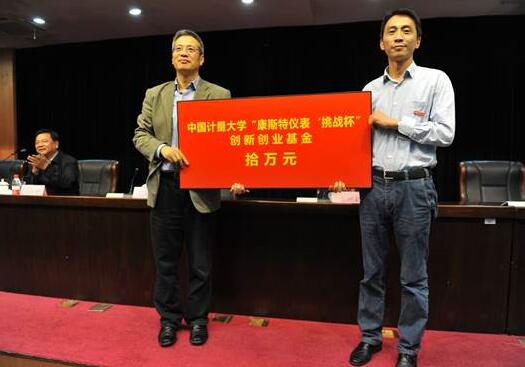 捐赠仪式上,校党委书记张土乔向姜维利先生颁发了中国计量大学客座教授聘书,给姜维利、何欣佩戴中国计量大学新校徽,并代表学校接受北京康斯特仪表科技股份有限公司捐赠。该公司曾于2008年给中国计量大学捐赠了价值35万元仪器设备,今天再次捐赠价值220万元仪器设备,共建压力检测技术联合实验室,同时,每年捐赠人民币10万,设立创业创新基金。