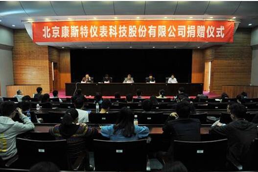 仪式上,冯时林代表学校对北京康斯特仪表科技股份有限公司的慷慨解囊、无私奉献表示衷心的感谢和崇高的敬意。他指出,康斯特仪表科技股份有限公司的慈心善举是响应“大众创业、万众创新”国家战略重要举措,展现了康斯特公司勇于承担社会责任的高贵品质,体现了姜维利董事长的大爱无疆和何欣校友的赤子之心。他承诺,一定会认真、细致管理好、使用好、维护好捐赠仪器设备,公开、透明、规范的使用创业创新基金。相信,该套仪器设备将进一步发挥实验室育人功能,拓宽师生的视野和研究领域;创业创新基金将进一步激发我校师生创业创新的热情,提升科研能力和水平。最后,冯时林希望广大师生要常怀感恩之心,做爱心使者,将北京康斯特仪表科技股份有限公司的爱心、社会的期待传递下去,使爱心之火长燃不息、慈善精神薪火相传。