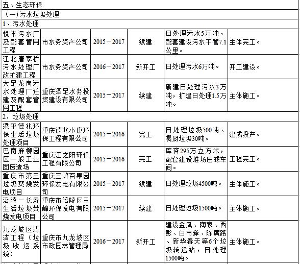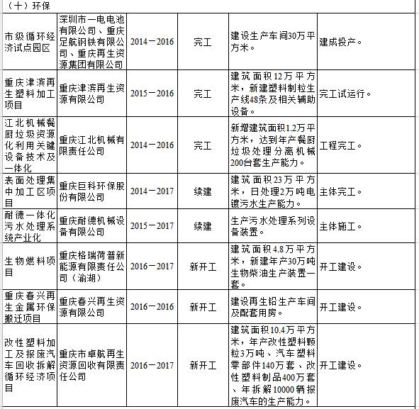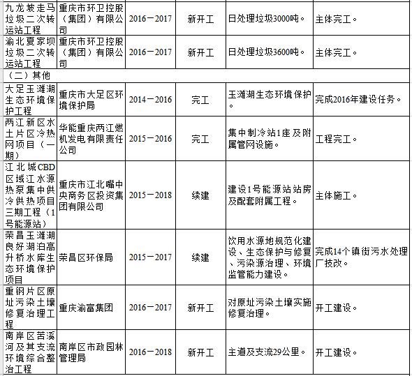 重庆市2016年重点建设项目名单(节能环保篇)