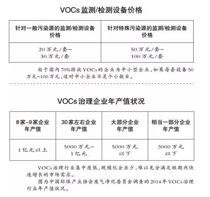 据了解,对于一般污染源,可以只考虑非甲烷总烃的监测/检测,监测/检测设备费用较低,一套设备需要20万元~30万元。“但对于重点污染源,除了对非甲烷总烃监测/检测外,还需要对苯系物等特殊污染因子进行监测/检测,设备的价格较高,可能需要50万元~100万元。这对中小企业不是个小数目。”业内人士认为。