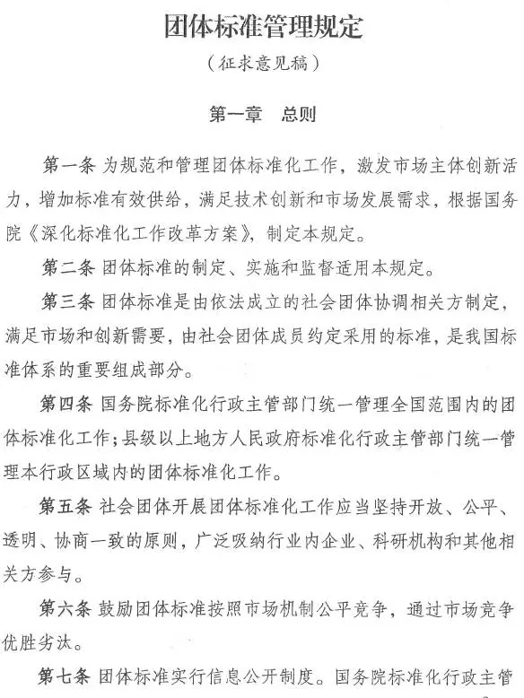 为了规范和引导团体标准工作有序发展,在质检总局、国家标准委《关于培育和发展团体标准的指导意见》实施一年多的基础上,《团体标准管理规定》(征求意见稿)日前完成起草。