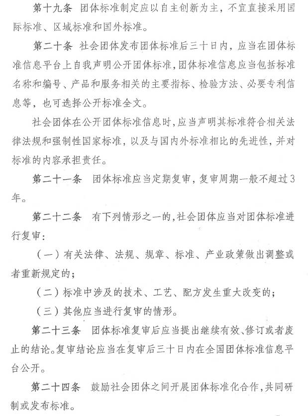 《团体标准管理规定》(征求意见稿)分为5章,共43条,从团体标准的制定要求、团体标准的实施和应用、团体标准的监督等方面做出规定,并在附件中给出了团体标准的封面格式。