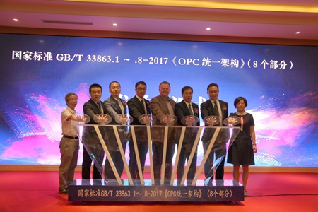 2017年9月5日,全国工业过程测量控制和自动化标准化技术委员会(SAC/TC124)秘书处,联合机械工业仪器仪表综合技术经济研究所(以下简称仪综所)、OPC基金会在北京成功举办了“GB/T 33863.1~.8-2017《OPC统一架构》发布报告会暨OPC UA认证测试实验室授权仪式”。国家标准化管理委员会(以下简称国标委)工业二部田昭莹副主任、徐全平处长,工业和信息化部(以下简称工信部)装备工业司董挺博士,OPC基金会主席Thomas J.Burke先生,SAC/TC124副主任委员、仪综所欧阳劲松所长,OPC中国主席张天贵先生出席并讲话。国际电工委员会IEC/TC65/WG16数字工厂国际标准工作组召集人Thomas Hadlich先生,OPC UA标准起草工作组成员,以及支持OPC UA互联的产品供应商和用户企业、工业通信技术组织、科研院所等代表及15家专业媒体记者共计120余人参会。