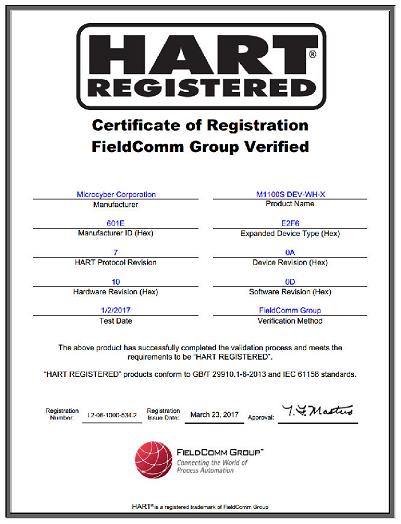 中科博微WirelessHART开发套件“M1100S DEV-WH-X”顺利通过FCG官方测试(由HART与FF基金会合并成为FieldCommunicationGroup,简称FCG),是中国地区首个获得WirelessHART产品官方认证的供应商。