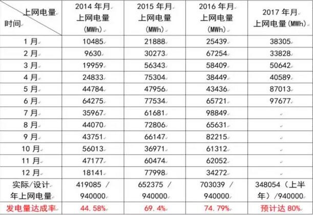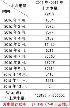 我们经过两个月的不断优化,到2016年11月份实际发电量已经达到设计值的98.7%,这当然与11月份的天气很好有关。今年2月份、2月份雨雪和风沙天气比较多,6月份是德令哈的雨季,严重影响发电,所以这三个月发电量都比较少。从4月份以后的五个月,实际的发电量和目标值只差了4.3个百分点,过去一整年实际发电量已经达到设计值的92.1%。我相信如果从去年的11月份开始,到今年的10月份为止的年度进行统计,发电量达到设计值的95%应该没有问题。