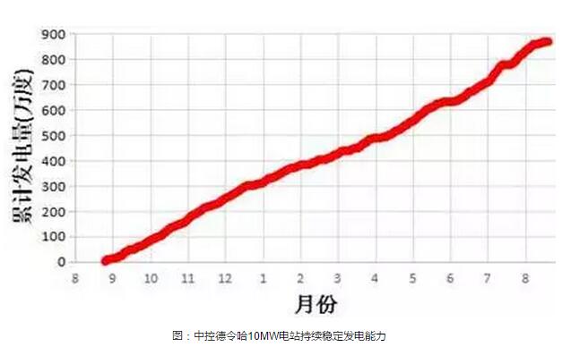 中控太阳能10MW电站发电量与设计值偏差小于5%,持续稳定发电一年多时间,实现了技术和装备的全面现场验证,能够满足50WM和100MW示范项目的成功投运。