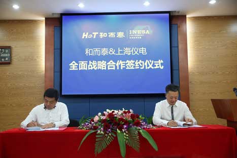 和而泰董事长/总裁刘建伟与上海仪电科仪董事长/党委书记/总经理汤志东签署协议