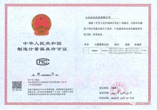 11月15日,北京远东仪表有限公司取得质量流量计制造计量器具生产许可证。