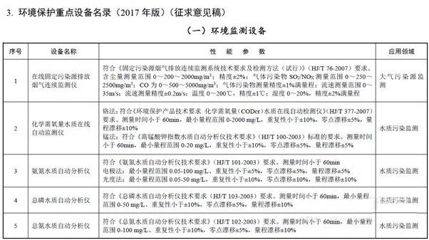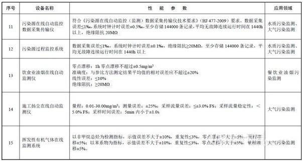 今年共有15类环境监测设备入选环境保护专用设备,相比2015年版名录,化学需氧量水质在线自动监测仪、氨氮水质自动分析仪等13项仪器不变,新增了施工扬尘在线自动监测仪、挥发性有机气体在线监测系统。名单如下: