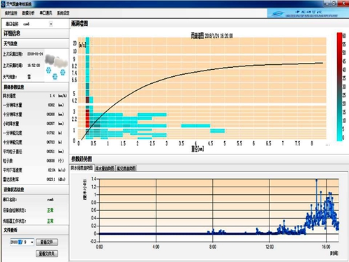 1月3日-5日和1月24日至今,安徽出现了今冬以来范围广、持续时间长、影响较为严重的连续性雨雪天气。安徽光机所环境光学研究中心自主研发的光学天气现象仪实时记录了完整的暴雪过程,监测数据包括:降雪天气现象的起始时间、瞬时降雪强度、降雪粒子粒径谱分布、降雪期间能见度及雷达反射率等多项重要气象参数。