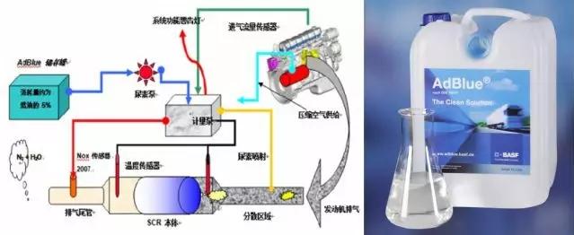 现阶段,我国普遍采用SCR(选择性催化还原法)技术,在催化剂的作用下,喷入还原剂氨或尿素,把尾气中的NOx还原成N₂和H₂O。其中,主要试剂就是柴油车尾气处理液(俗称车用尿素)。