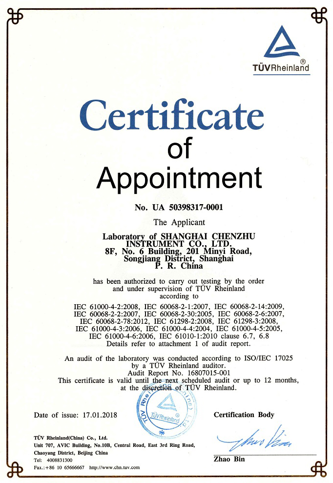 2018年初,上海辰竹仪表有限公司实验室(以下简称“辰竹实验室”)通过了ISO/IEC 17025体系符合性的审查,并取得德国莱茵TüV集团颁发的体系认可证书。