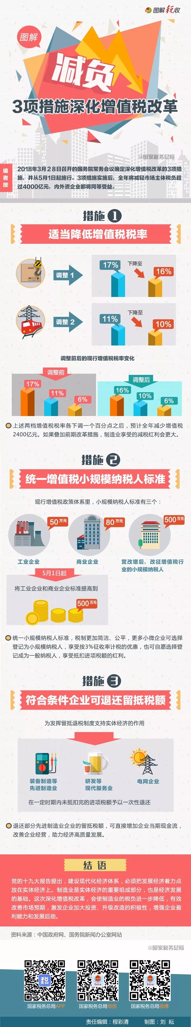 2018年3月28日召开的国务院常务会议确定深化增值税改革的3项措施,并从5月1日起施行。3项措施实施后,全年将减轻市场主体税负超过4000亿元,内外资企业都将同等受益。
