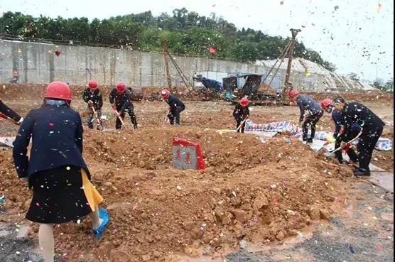 周振博士、副总经理傅忠、总经办主任蒋米仁、承建单位代表纪卫国董事长、监理公司代表李进总经理助理、设计单位代表谢颖诗所长、创始团队代表粘慧青、持续探索实践的核心技术人员代表李磊、踏实敬业经理代表李卫东、刻苦钻研的高端科研人员代表李梅、兢兢业业的十年老员工代表陈少得、默默支持禾信创业的家属代表吕淑梅等十二位人员在隆隆礼炮声、鞭炮声中,共同挥动彩锹,为禾信产业园培土奠基,祝愿广州禾信再次扬帆起航!