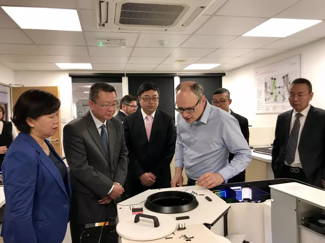 4月15日高玉清一行前往英国爱丁堡仪器公司Edinburgh Instruments访问。该公司与瑞士普利赛斯公司同属一家香港上市公司,是一家专注于生产和研发高性能研究级光谱仪的公司。主要产品为荧光寿命光谱仪和气体传感器。该公司CEO Roger Fenske博士和研发经理Dirk Nather进行了接待,并对公司发展做了总体展示,高玉清一行饶有兴致地听取了Dirk Nather对自己钟爱的技术和主要产品的原理、性能及应用等方面的详尽介绍,并实地观看了其应用实验室中样机的测试过程。