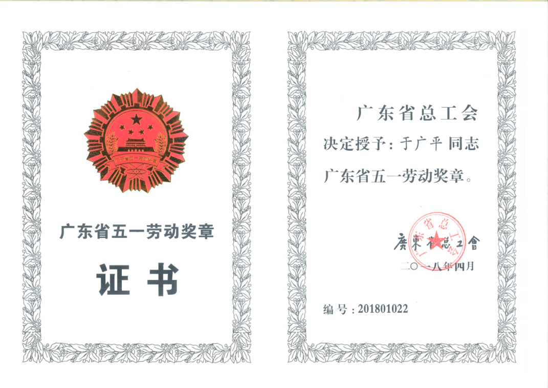 4月28日上午,广东省庆祝“五一”国际劳动节暨劳模表彰大会在广州举行。广州中国科学院沈阳自动化研究所分所((以下简称广州分所))于广平研究员荣获“广东省五一劳动奖章”。