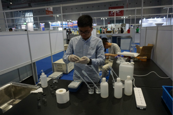 浊度项目的比赛时间定于6月14日,现场,选手们先阅读使用说明再操作仪器做比赛盲样的检测,操作过程有条不紊,展现出了水处理人应用的专业素质。“雷磁”赞助的19台(17台用于比赛,2台作为备用)浊度计在赛事中,其稳定性和可靠性均达到了预期,得到了上海市环境学校负责老师的高度认可。
