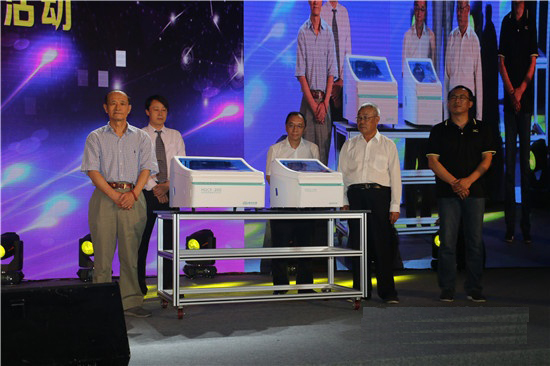 本次庆祝活动上,海光公司隆重发布HGAF-900系列原子荧光光度计、HGCF系列全自动连续流动分析仪两款分析仪器。清华大学邓勃教授、地矿部物探研究所张锦茂研究员、海光公司第四任总经理刘明钟、中国仪器仪表学会分析仪器分会荣誉理事长闫成德、原地矿部科技司周金生处长、中国仪器仪表学会常务副秘书长张彤、中国仪器仪表行业协会专职副理事长李跃光、中国环境监测总站齐文启研究员、海光公司原子荧光事业部经理梁敬、海光公司流动分析事业部经理宫博共10位嘉宾为新品揭幕。