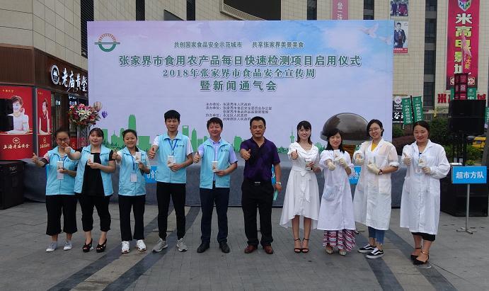 7月5日上午,张家界市人民政府副市长、市食安委副主任邹菊芳在市食安委于永定区中商广场举办的“张家界市食用农产品每日快速检测项目启用仪式暨新闻通气会”上宣布张家界市食用农产品安全每日快速检测项目正式启用,永定、武陵源城区设立的9个快检实验室已全面开展快速检测工作。