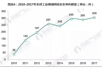 根据美国ICS-CERT收录的数据显示,2010年以来,全球工业领域发生的信息安全事件数量呈现逐年上升趋势,从2015年以来每年发生工业信息安全事件数量近300起。攻击的行业领域也不断扩大,造成后果愈加严重。从被攻击的行业分布来看,目前主要分布在制造业、通信、能源、供水和市政施设领域。2017年5月,蠕虫病毒“WannaCry”入侵了全球150多个国家的信息系统,多家汽车制造商被迫停产,能源与通信等重要行业损失惨重。随着工业控制系统越来越标准化,工控系统漏洞数量增加,工业信息安全变得易攻难守。2017年12月,特朗普取消了奥巴马时期的“网络中立”原则,意味着中国未来将要面对断网,网络攻击和网络战争的风险。现在的战争已经是无硝烟的战争,金融战争与网络战争将会成为常态,目前中国工业信息安全基础仍然比较薄弱,但是近两年受到国家重视有较快发展。