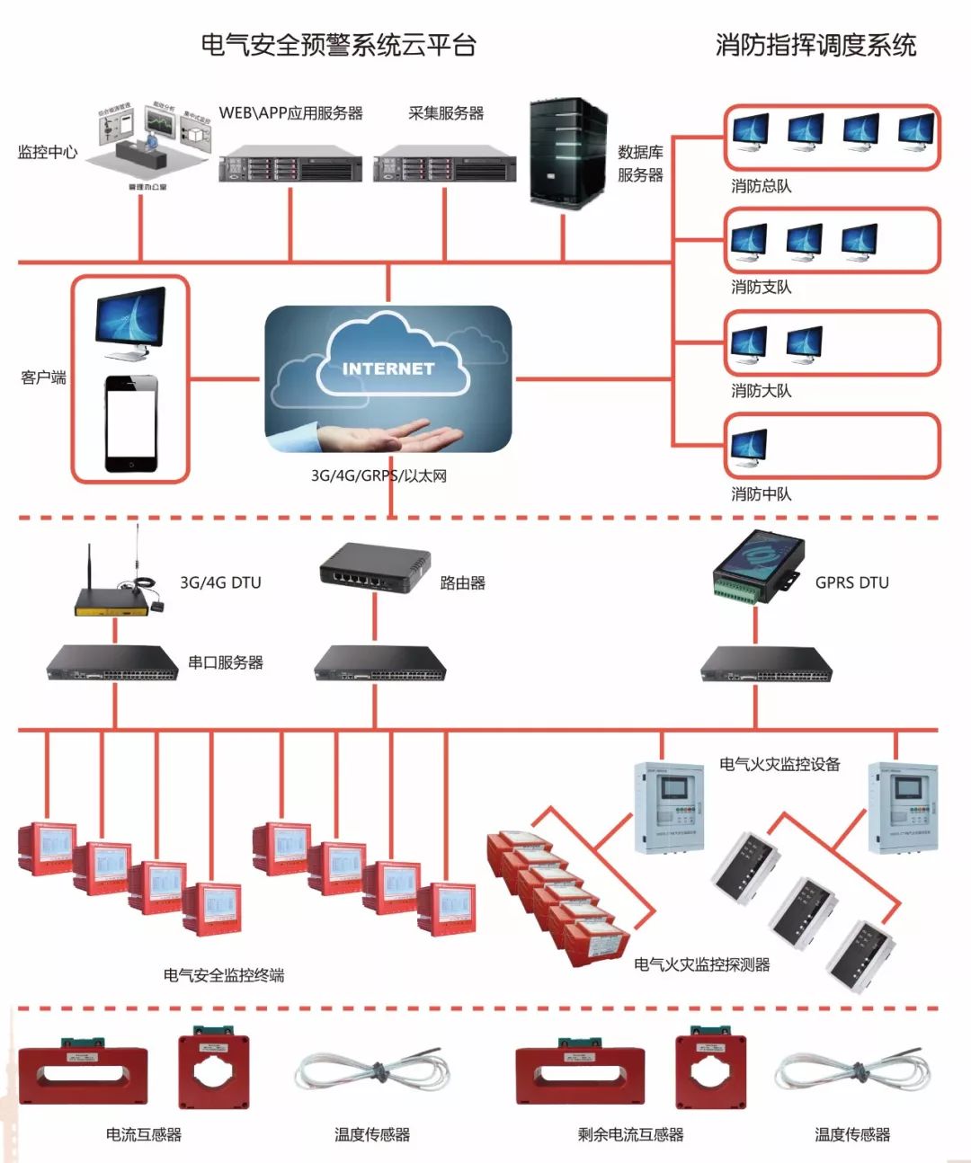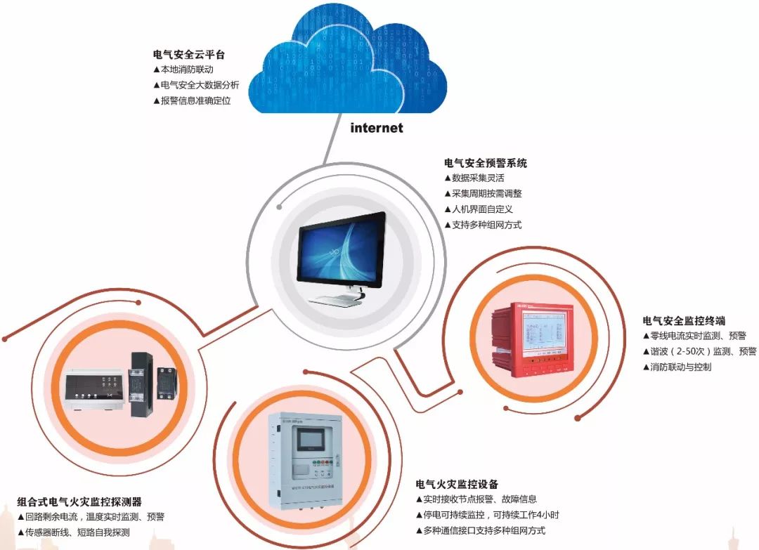 依靠电气安全云平台、电气安全预警系统,监控终端、探测器等,将各监测点的电气安全预警、治理数据实时传送至系统平台数据中心。
