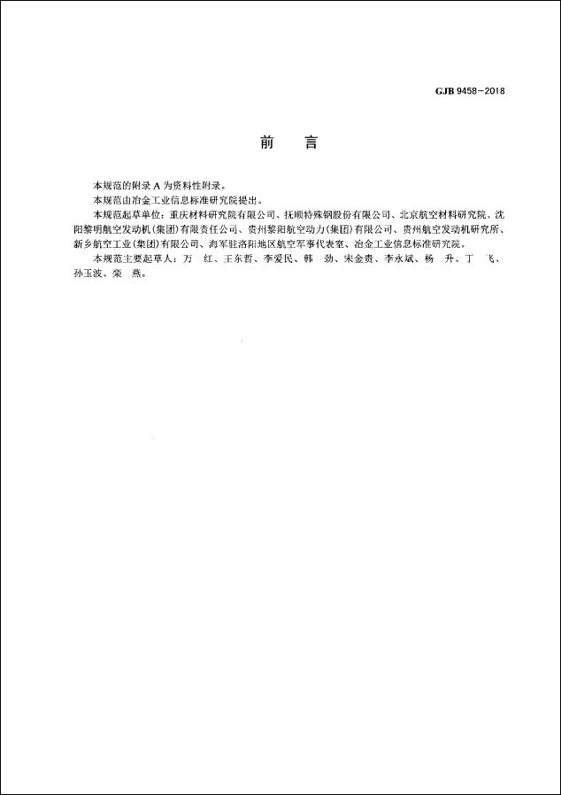 该标准的发布与实施,将为航空发动机用弹簧、航空仪表和自动化装置的结构零件等合金材料的生产和应用提供完整、科学的技术规范,有利于产品的订货、生产及验收,为产品质量的保障提供可靠的依据,能更好地满足航空发动机的需求,为支撑航空工业发展做出积极贡献,具有显著的军事效益和社会效益。