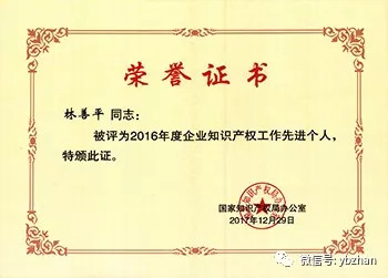 近日,国家知识产权局下发了《关于表扬企业知识产权工作先进集体和先进个人的通知》,福建顺昌虹润精密仪器有限公司董事长林善平荣获“企业知识产权工作先进个人”,福建省有8位企业家获此殊荣。