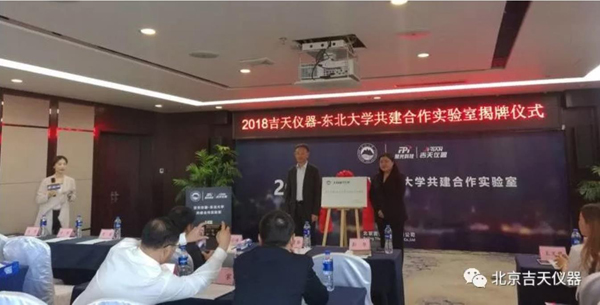 2018年09月17日,东北大学与北京吉天仪器有限公司(以下简称吉天仪器) 签署战略合作协议,共同建立吉天仪器-东北大学共建合作实验室,并在东北大学国际学术交流中心举行了实验室的揭牌仪式。此次合作受到了东北大学、北京吉天及行业内专家学者的高度关注与重视,东北大学副校长王建华教授、吉天仪器董事长彭华女士、国家食品安全风险评估中心理化实验部主任赵云峰先生等60余位相关领导、专家学者受邀出席本次揭牌仪式。