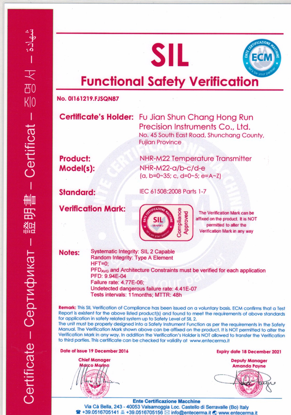 近日,虹润智能仪表系列产品再传喜讯,虹润两款智能仪表产品NHR-M22温度变送器、NHR-M23配电器获得了国际SIL2功能安全认证证书。这标志着虹润仪表产品的安全性达到了国际标准。也为虹润产品实现走向世界的美好愿景再一次打下了坚实的硬件基础。