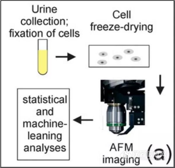 这项研究最新发表在国际顶级期刊《PNAS》上。值得注意的是,这也是原子力显微镜首次成功的应用于临床诊断。研究人员通过原子力显微镜,对癌症患者尿液中的细胞进行纳米级别的观察,发现癌症患者尿液中的细胞具有独特的特征。