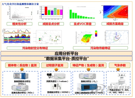 聚光科技大气光化学污染监测整体解决方案中,涵盖光化学前体物(VOCs和NOx)、光解速率及光化学特征产物(O3和PAN)的全过程监测,可满足研究机构和环保局对光化学污染形成原因、机理及过程分析的需要。该套方案曾经应用在杭州G20峰会、厦门金砖会议、乌镇世界互联网大会等多个重大会议的保障任务中。