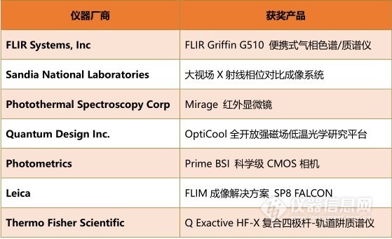 值得关注的是,今年共有12款分析仪器强势入围R&D 100大奖名单,最终7款仪器摘得大奖。获奖产品涉及质谱、成像、显微、光学相机,菲力尔、美国PSC、Quantum Design、徕卡、赛默飞世尔等仪器厂商斩获殊荣。