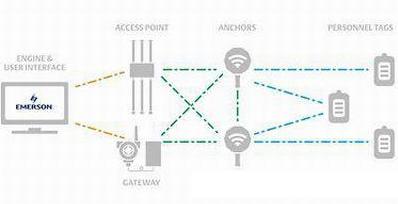 人员追踪器的数据由位置锚点测得,并经接入点和网关传输到用户界面