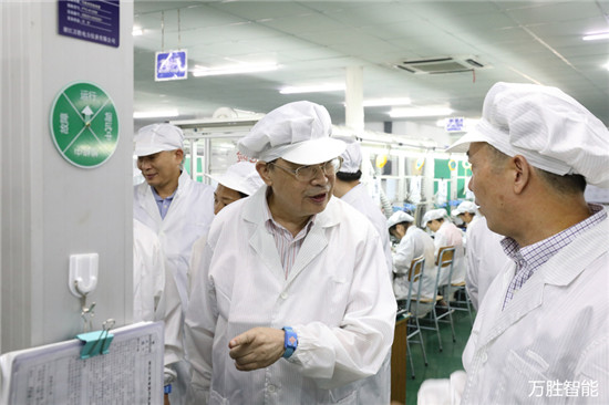在公司董事长邬永强和副总经理陈东滨的陪同下,刘人怀院士、朱泽飞校长和县领导一行参观考察了万胜公司生产经营和技术研发情况。