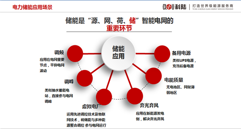 在促进清洁能源消纳方面,国网提出将用市场办法引导用户参与调峰调频,重点通过虚拟电厂和多能互补提高分布式新能源的友好并网水平和电网可调控容量占比,基于电力市场实现集中式新能源省间交易和分布式新能源省内交易,缓解弃风弃光,促进清洁能源消纳。而储能在电网侧、新能源发电侧、电力市场以及综合能源服务均有重要应用。