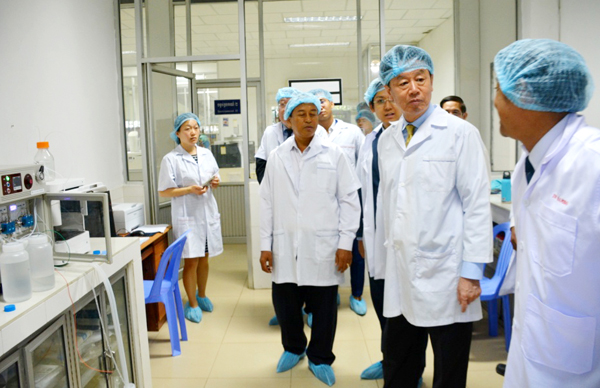 随着中柬食品工业联合实验室工作人员对仪器的验收完毕,北京海光仪器有限公司又一台LC-AFS6500液相色谱原子荧光联用仪成功落户海外。在仪器培训过程中,恰逢科技部副部长张建国视察中柬合作项目运行情况。海光工程师向张部长汇报了仪器的安装使用情况,并现场演示了检测过程。