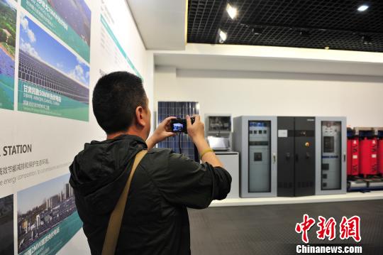 一名记者拍摄正泰集团展示的部分产品。 张茵 摄