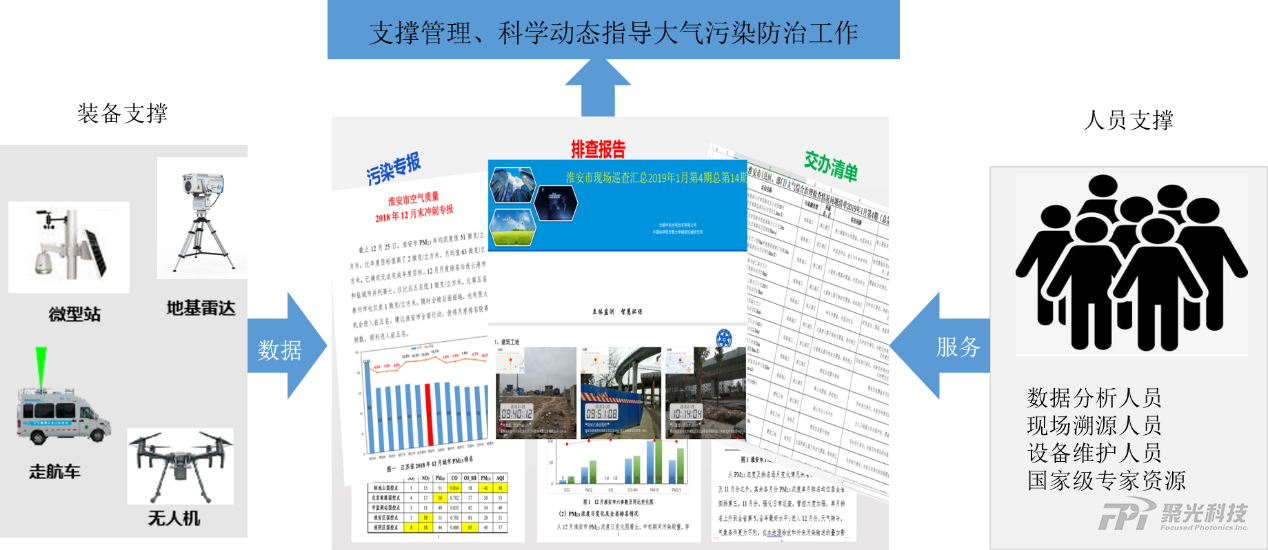 工欲善其事,必先利其器。中科光电专家团队现场走访调研,根据各地实际情况,一站式配齐颗粒物激光雷达、大气环境立体监测走航车、无人机等新型环境监测设备,并与原有点状分布的空气自动站相结合,打造出地空天一体化的全覆盖空气监测网络,污染源暴露在监测网中无可遁形。