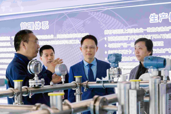王文序副省长一行先后参观了生产大厅和展厅。方垒向王文序副省长简要介绍了和利时的发展历程,在火电、石化、高铁、核电等行业的业绩和市场地位及杭和在集团中的分工、业务规模、生产状况等。同时结合本次调研主题,方垒就杭和在电气仪表领域业务整体情况做了重点介绍与交流。王文序副省长详细询问了仪器仪表产品的研发制造及应用情况,并仔细观摩了仪器仪表相关产品。杭系公司副总经理赵爱兵就和利时仪表业务具体情况、仪表产品在整个控制系统中的重要性及在工业现场中的不同应用进行了详细讲解。