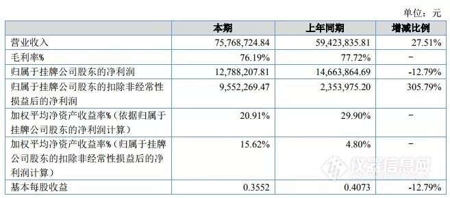 日前,苏州纽迈分析仪器股份有限公司(简称:纽迈分析)发布2018年年度报告。报告内容显示,报告期内纽迈分析主营的低场核磁共振设备业务依然坚持稳中求进的发展态势。2018 年纽迈分析共实现销售收入 7,576.87 万元,比上年同期增长27.51%;归属于挂牌公司股东的净利润为1278.82万元,比上年同期减少12.79%;归属于挂牌公司股东的扣除非经常性损益后的净利润955.23万元,比上年同期增加305.79%。