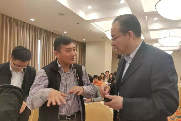 ▲江苏省工信厅厅长谢志成与越南中国商会秘书长吕疆交流