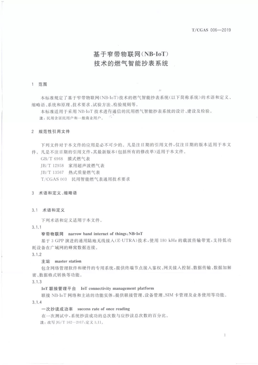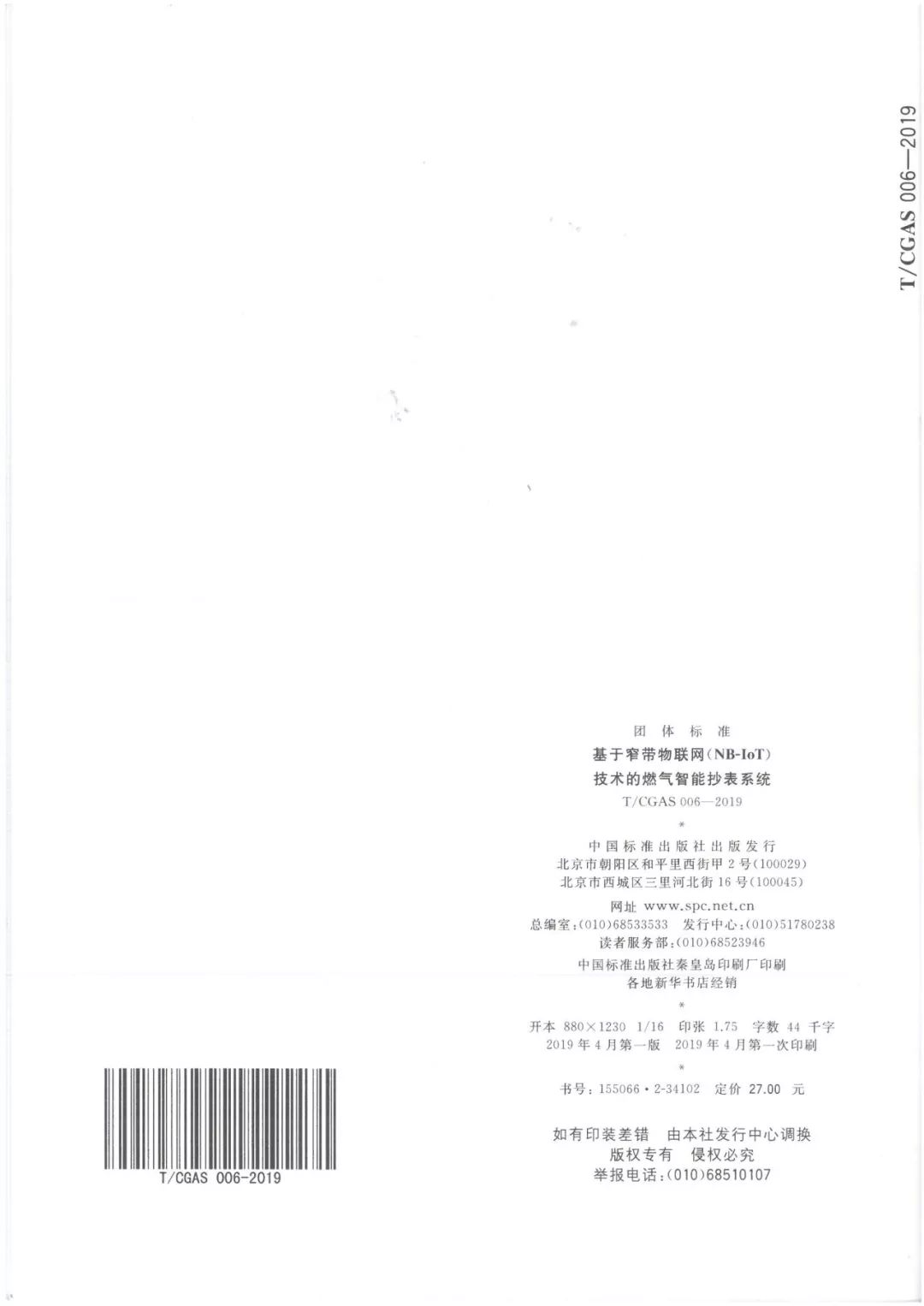 2019年4月1日,中国城市燃气协会批准发布了《基于窄带物联网(NB-IoT)技术的智能燃气抄表系统》团体标准,该标准于2019年5月1日起实施。该标准由行业相关领域专家、中国城市燃气协会及深圳市燃气集团、华为公司、中国电信和金卡智能公司等单位深度参与完成。