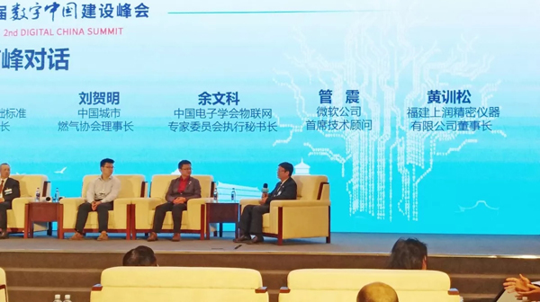 在高峰对话环节中,福建上润黄训松董事长与中国城市燃气协会理事长刘贺明、国家物联网基础标准工作组秘书长张晖、微软公司首席技术顾问管震、小米标准和新技术部总监张明、中国电子学会专家委员会执行秘书长余文科畅聊标准引领物联网产业良性发展,多角度阐述标准在物联网产业发展的重要性,高峰对话由中国·福州物联网开放实验室总裁高腾主持。