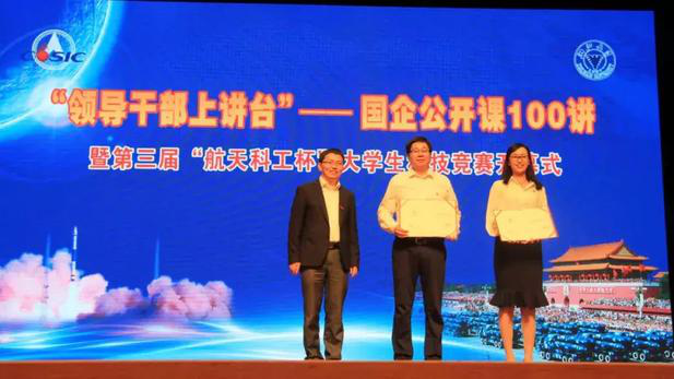 报告会前,还举行了第三届“航天科工杯”大学生科技竞赛开幕式,陈国瑛致辞并与郑强共同为竞赛揭幕。本次竞赛以“前沿理论或创新技术在航天领域中的应用”为主题,旨在为广大在校航天爱好者交流创新思想和创意设计搭建平台,为大学生增强创新精神和实践能力拓展渠道,进一步丰富与高校的合作形式。