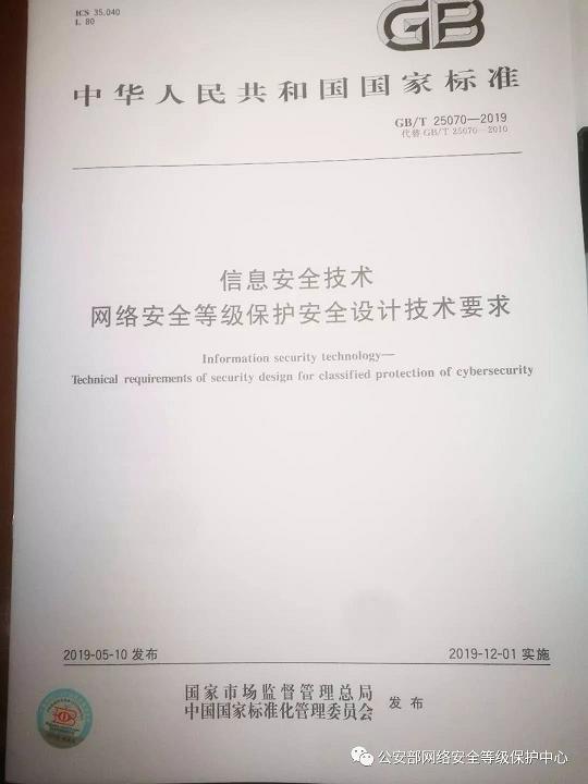 5月13日下午,国家标准新闻发布会在市场监管总局马甸办公区新闻发布厅召开,网络安全等级保护制度2.0标准正式发布,实施时间为2019年12月1日。