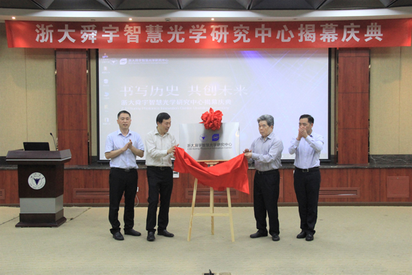在当天的揭幕庆典上,叶辽宁发表了热情洋溢的讲话,并和王文鉴、浙江大学科研院开发与技术转移部部长翁宇、光电科学与工程学院院长刘向东一起,共同为中心的落成揭牌。
